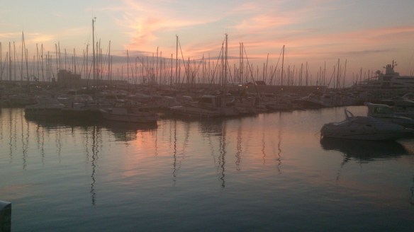 Miro al Oeste, cada vez más consciente de encontrarme en un punto del plano del tiempo, y me introduzco en un enorme pasadizo de luz creado por la complicidad del sol y la mar. Las barcas durmiendo su sueño de calma, que sólo el puerto les puede brindar, acompañadas por las gaviotas también adormiladas por las caricias del ya tibio sol vespertino. Más allá, al Sur, la inmensa y misteriosa mar tocando el cielo en el horizonte inalcanzable. Bueno inalcanzable con una barca, pero siempre cerca cuando lo miras, lo oyes, lo respiras, lo saboreas, lo tocas….con el corazón.