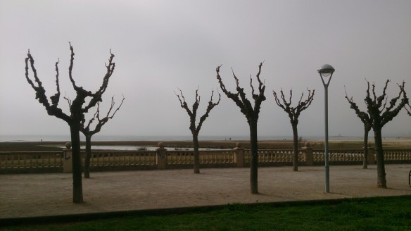 Pondremos un poema de una tarde de niebla junto con unas fotos de la Iglesia de Mar de Vilanova i la Geltrú. En el fondo surgiendo de la niebla una de las grúas del puerto.