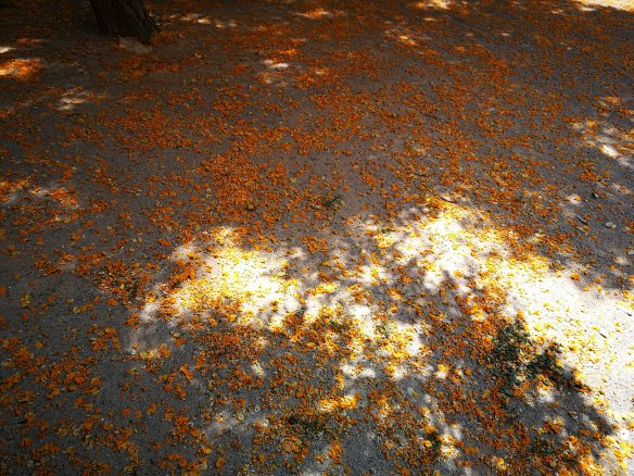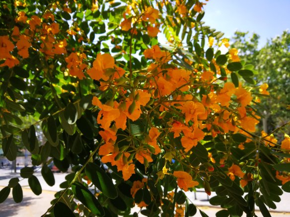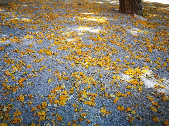 Los árboles de las plazas hacen llover sol en sus flores amarillas.