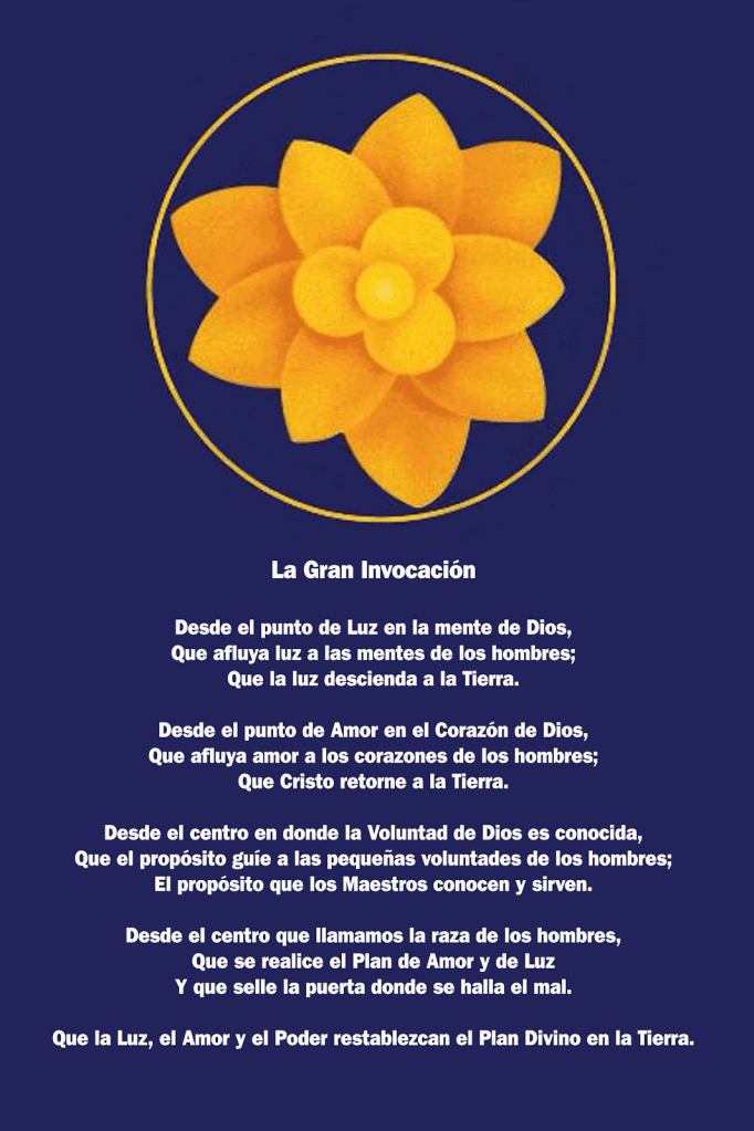 Los/as que así lo sientan, podemos unirnos en esta Plegaria a través de la Gran Invocación. Un mantra que nos une a toda la humanidad más allá de razas y credos religiosos o políticos.