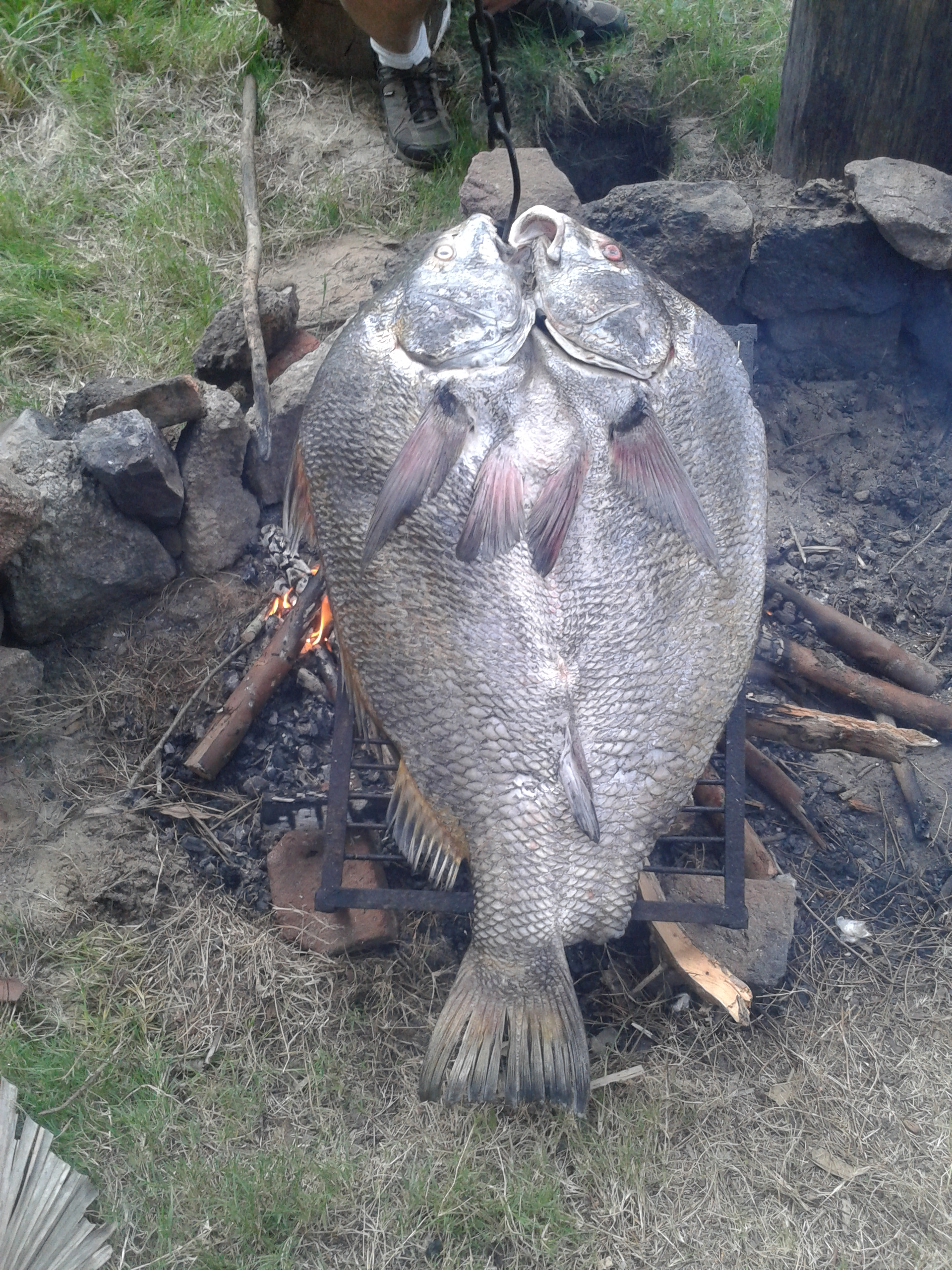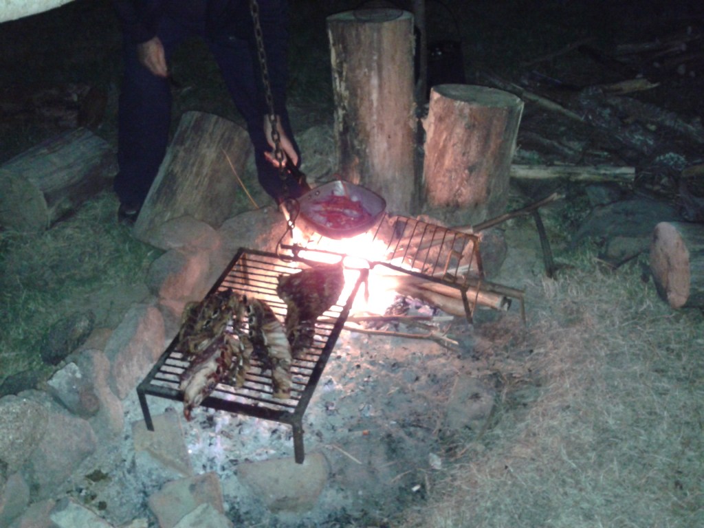 Entre el aire más que fresco que nos había obligado a ponernos una chaqueta, el olor maravilloso que salía de la olla y el color rojo de las brasas, estábamos paralizados.