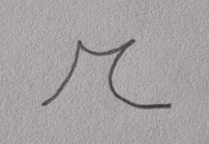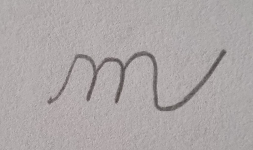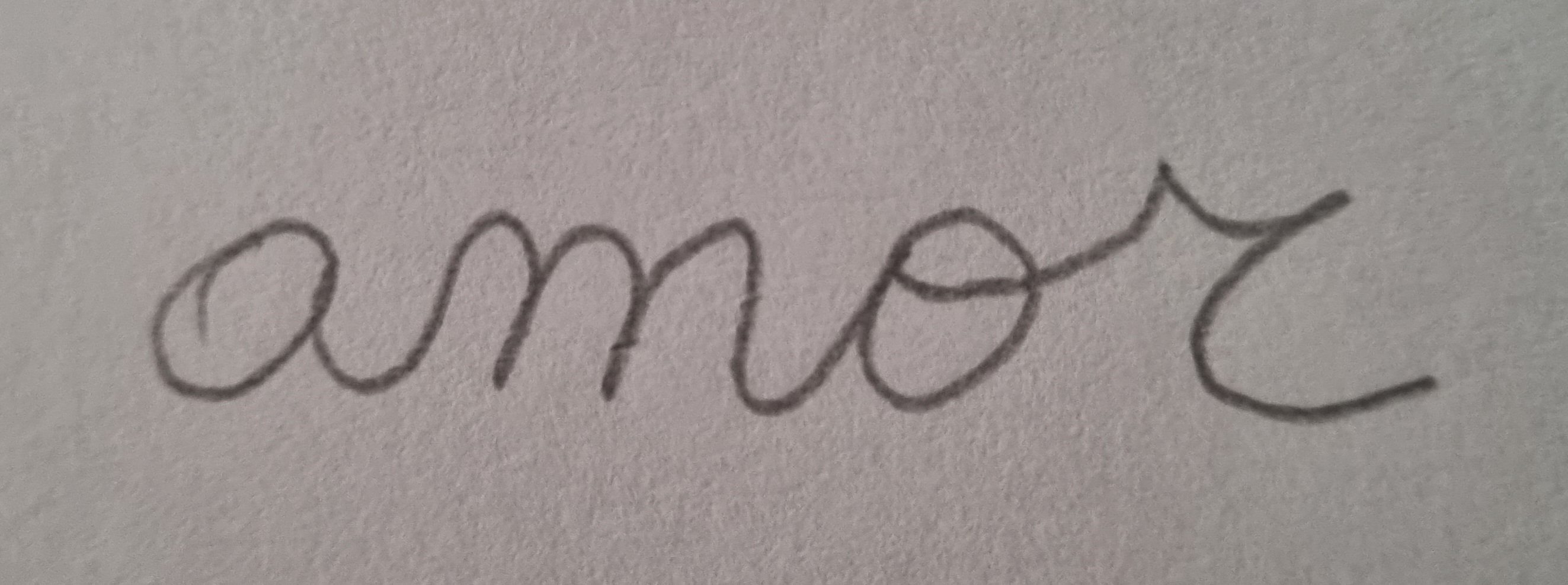Comienza por la letra “a”, la que manuscrita es un círculo al que agregamos un sólo brazo a su derecha, curvado extendiéndose al cielo. Este brazo se une a la letra “m”, la que manuscrita parece un puente de tres arcos por donde seguramente pasa río caudaloso, el último brazo del puente queda listo para unirse a un camino. Una vez del otro lado del río nos encontramos con la sensual “o”, formada por dos círculos uno grande que contiene al pequeño a modo de cabeza escondida que piensa y de ella sale al cielo una idea. Esta idea se convierte en el primer muro de la “r”, con forma de casa.