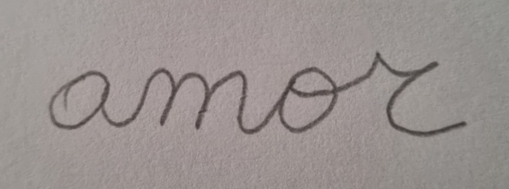 Escribir estas letras con un lápiz es disfrutar de cada curva, cada lazo que une con suavidad una letra con la otra. Cada curva o vuelta de la letra te lleva a saborear y sentir el alma. Entras en el Espíritu, el que todo lo engloba, el que todo lo abarca, el que está en todo. El que es 4 letras creando AMOR.
