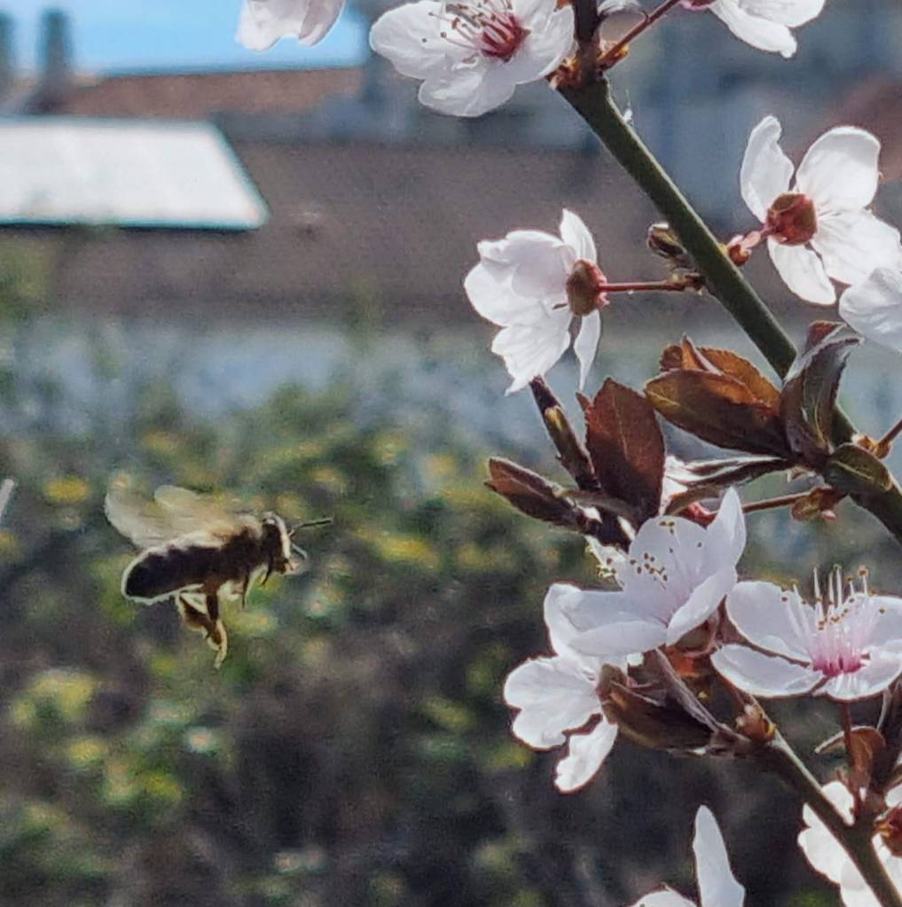 Fue entonces cuando pensó «qué vida más larga y maravillosa la mía, he visto cosas extraordinarias, he polinizado miles de plantas, he hecho deliciosa miel perfumada, he compartido colmena con mis hermanas, he visto desde el aire ríos calmos, torrentosos, pequeños y grandes…»
